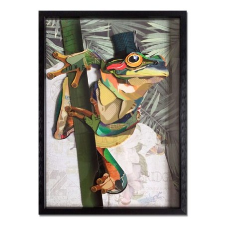 Peinture collage 3D 'Grenouille avec chapeau haut de forme 1' - Multicolore